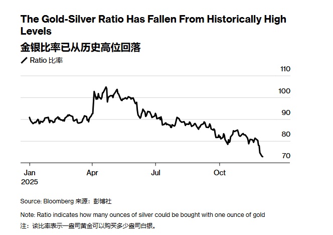白银的金融魅力也不容小觑。相比动辄上千美元一盎司的黄金,白银门槛低得多,对普通投资者更友好。而且每逢贵金属行情启动,它的波动往往更剧烈,吸引了不少追逐弹性的资金。年初金银比一度突破100:1——意味着一盎司黄金能换一百盎司以上白银——创下多年高位。在许多人眼中,白银显得“便宜得离谱”,自然引来抄底资金涌入。
