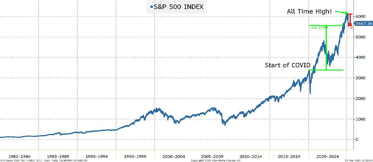 我们最近一次创下历史最高纪录是在2月19日。标普500在一个月内下跌了5.7%,今年迄今下跌3.5%。