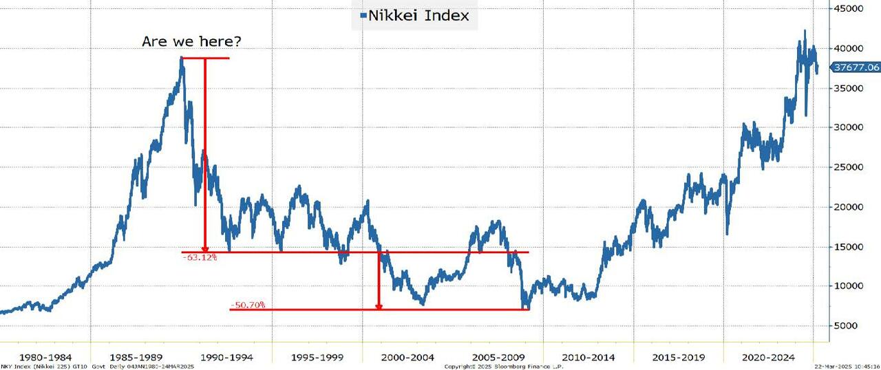 当时明显看出市场会在2.5年内下跌60%吗?当然,有些反弹很大,但下跌相当丑陋且无情。1990年1月1日会有人打赌需要30多年才能收复损失吗?